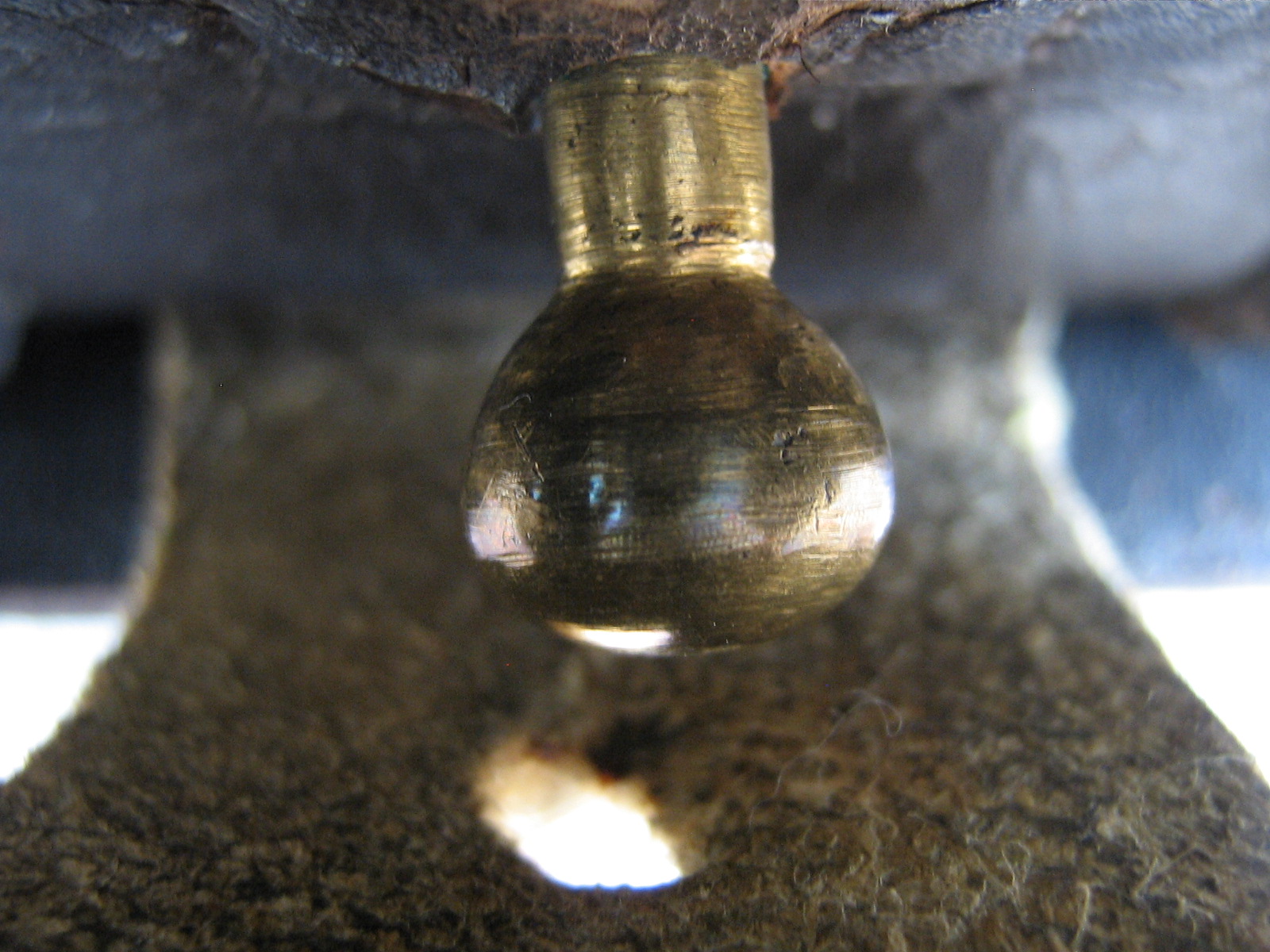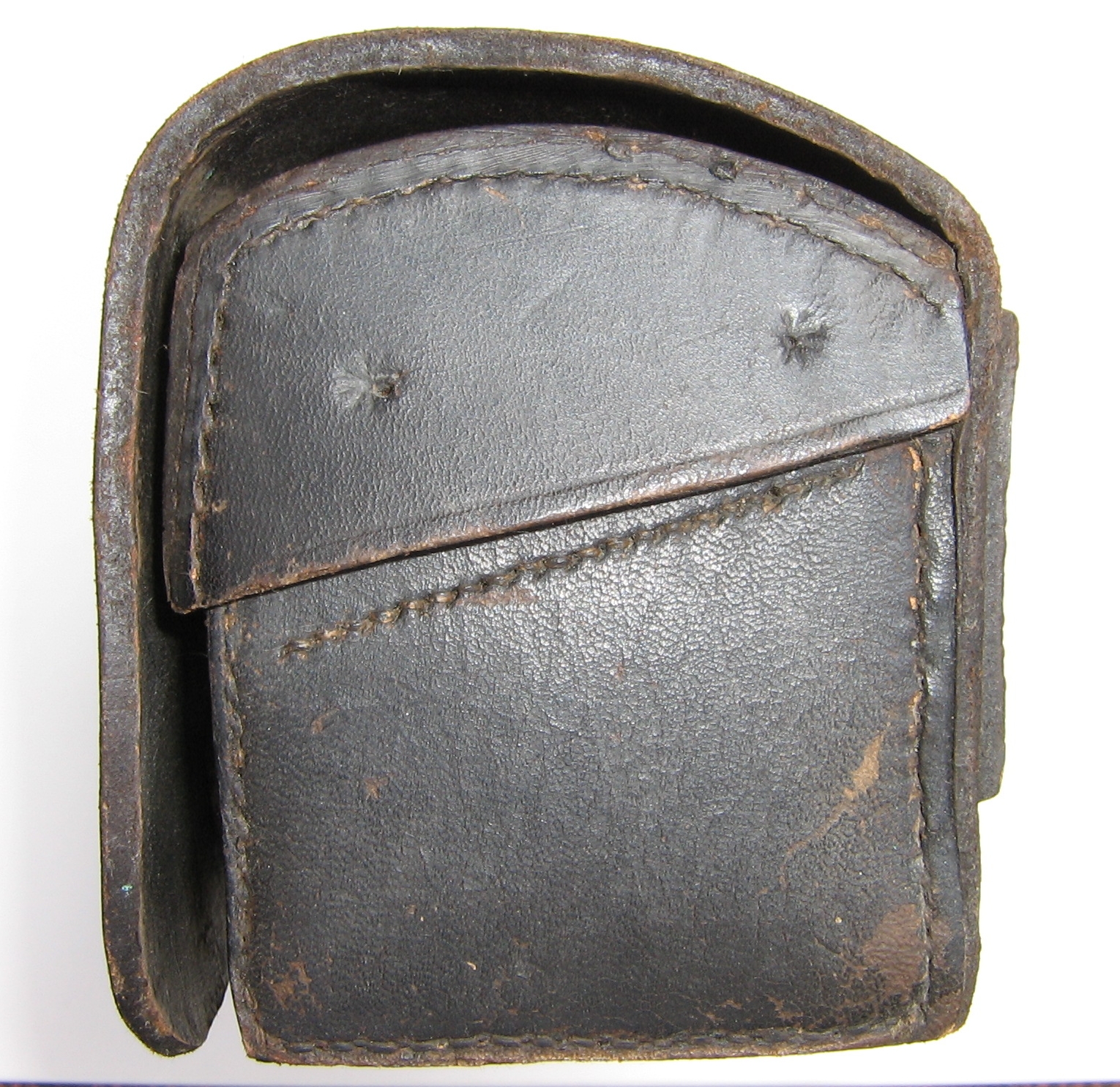 Tim's is copied from the 'Thaxton' box in the collection of the Wisconsin Veterans Museum. It belonged to TB Thaxton of Co, C, 7th Texas Cavalry. I have just been studying that particular pouch, and Tim's is an exacting copy. The finial on my original appears to be turned brass. See picture.