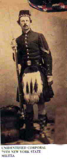 The small, "baby size" US plate (41X72mm) is seen in the last photo and can also be seen on prisoners of the 79th in photos taken at Castle Pinckney following their capture at Bull Run. The clipped corner plates with applied company letters are seen in a number of 79th photos and museum artifacts and were supposedly issued with a rectangular shoulder belt plate with an applied '79.' These don't seem to have been used in the field. An excellent study of uniforms worn by the 79th can be found in William Arley Beard IIIs "History of the 79th NY Cameron Highlanders" published by Strawberry Plains Press in 1996.