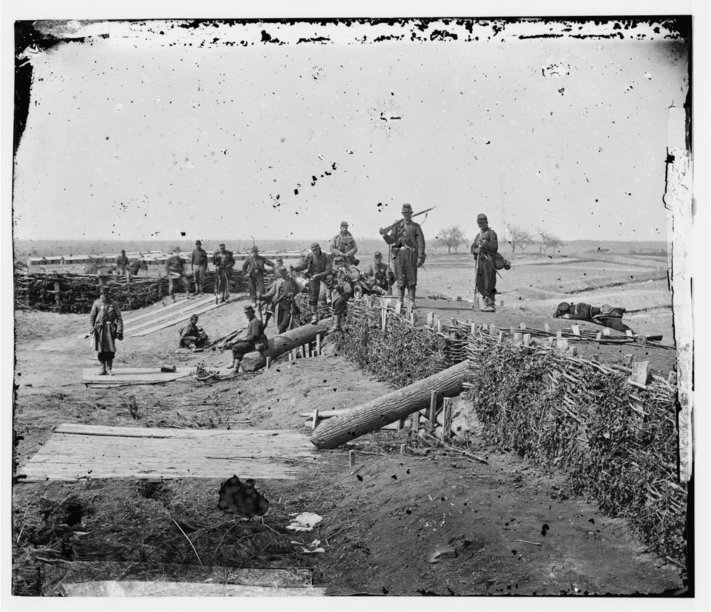 TITLE: [Group of Federal soldiers in Confederate fort on heights of Centreville with Quaker guns]