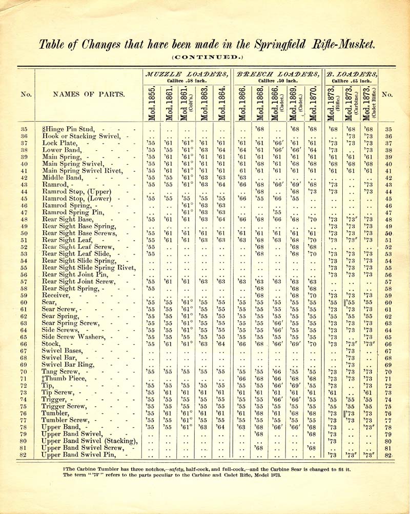 Re: Table of Changes Made in the Springfield Rifle-Musket, From 1855 to 1873