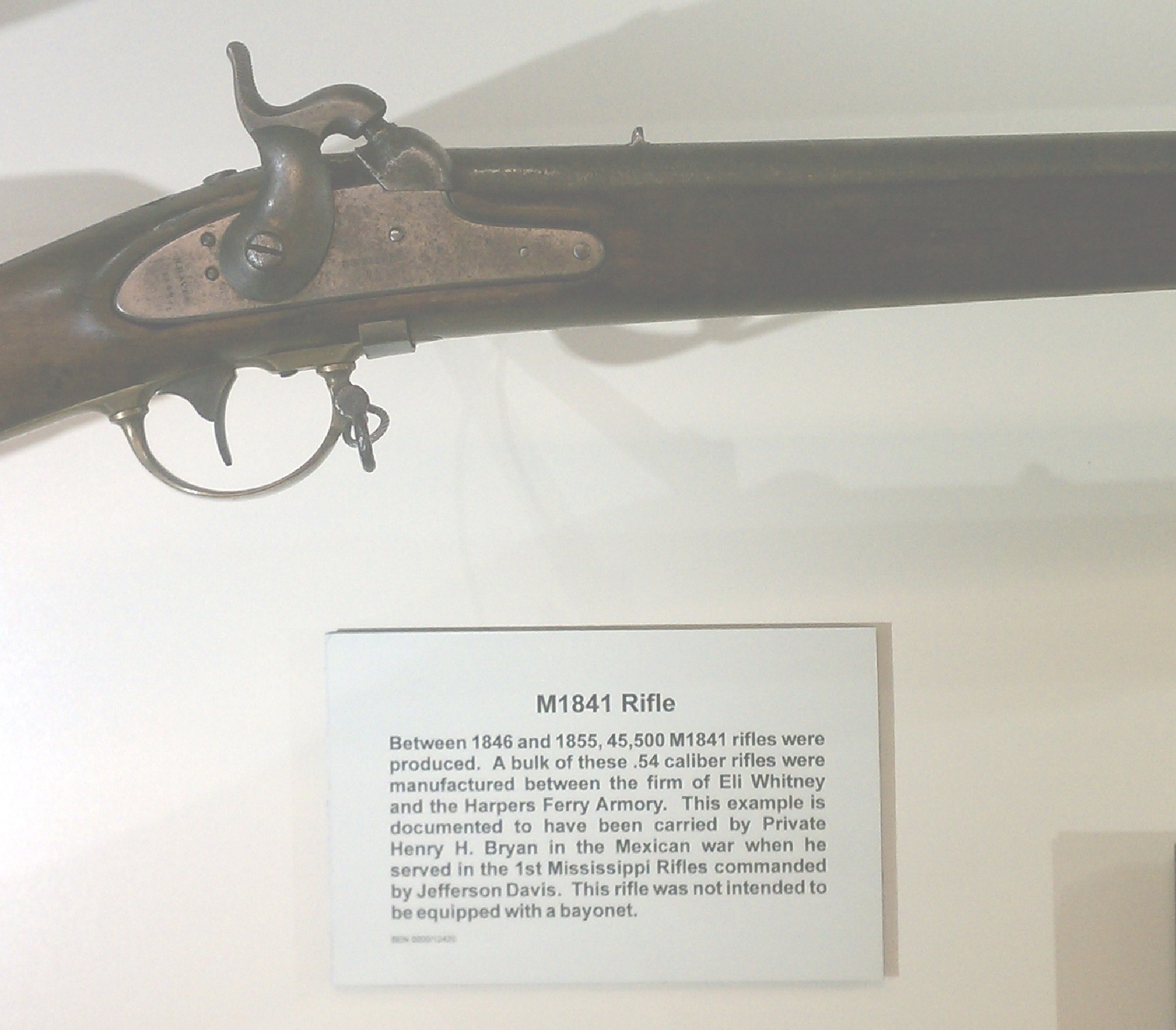 He states that when the 1st Mississippi arrived in New Orleans in route to Mexico, they were issued their new rifles that their Colonel, Jefferson Davis had promised them. Their new rifles were made by Whitney-which makes sense because Whitney was the first contractor to deliver U.S. Model 1841 Rifles.