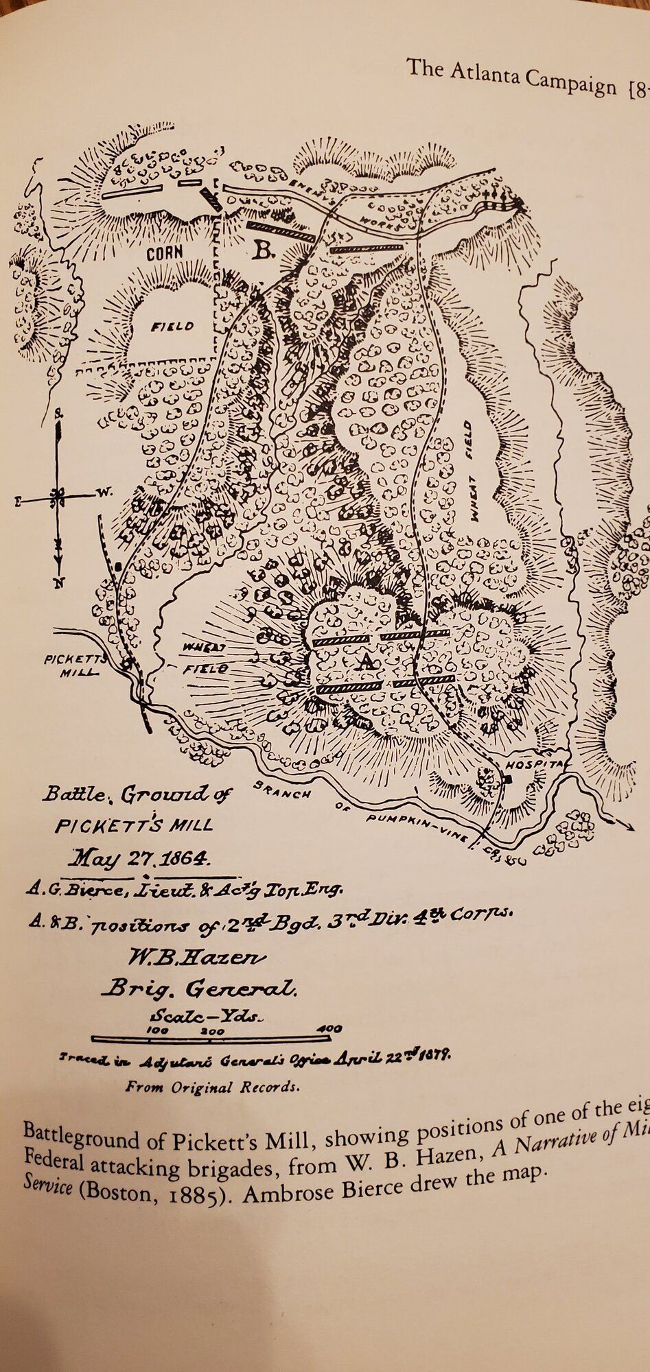 One of the main reasons that a single line of dismounted Cav. was able to hold the multiple lines of Hazen/part of Scribner/Gibson's survivors(for about 1 hour) was the Cav were on a high ridge, were able to throw up hasty cover and were heavily concealed by the trees and Chinquapin. But the Cav. got blown off the ridge twice from heavy fire from their front and to their left from the Granbury/Gibson fight, with a portion of Hazen's right wing shooting into their left as well. But Ashby's/JT Wheeler re charged every time to retake the position and charged the Federals into the north cornfield. They stood tall that day though and outlasted the Infantry to their front. Hazen's Infantry no less. It's amazing that historians never realized that Sam Watkins was writing about Pickett's Mill.