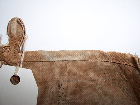 Ross: I saw a 17th conn marked haversack awhile back on an auction. It was the standard tarred U.S. style. You are likely right about the blue line being a replacement. Jim Hensley