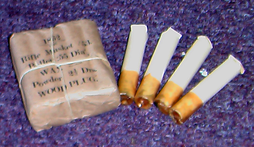 Bundling them to look crisp takes some practice. First your rounds have to be dimensionally correct. Then you have to add a 1/2" green paper tube of 12 caps to one end. Not to mention using period correct string to tie the bundles with. If bundled dimensionally correct the arsenal packs will fit somewhat snugly into the lower half of the cartridge box tins. If not bundled dimensionally correct they will not fit. If not bundled dimensionally correct the 100 packs will not fit into the correct sized arsenal crate.