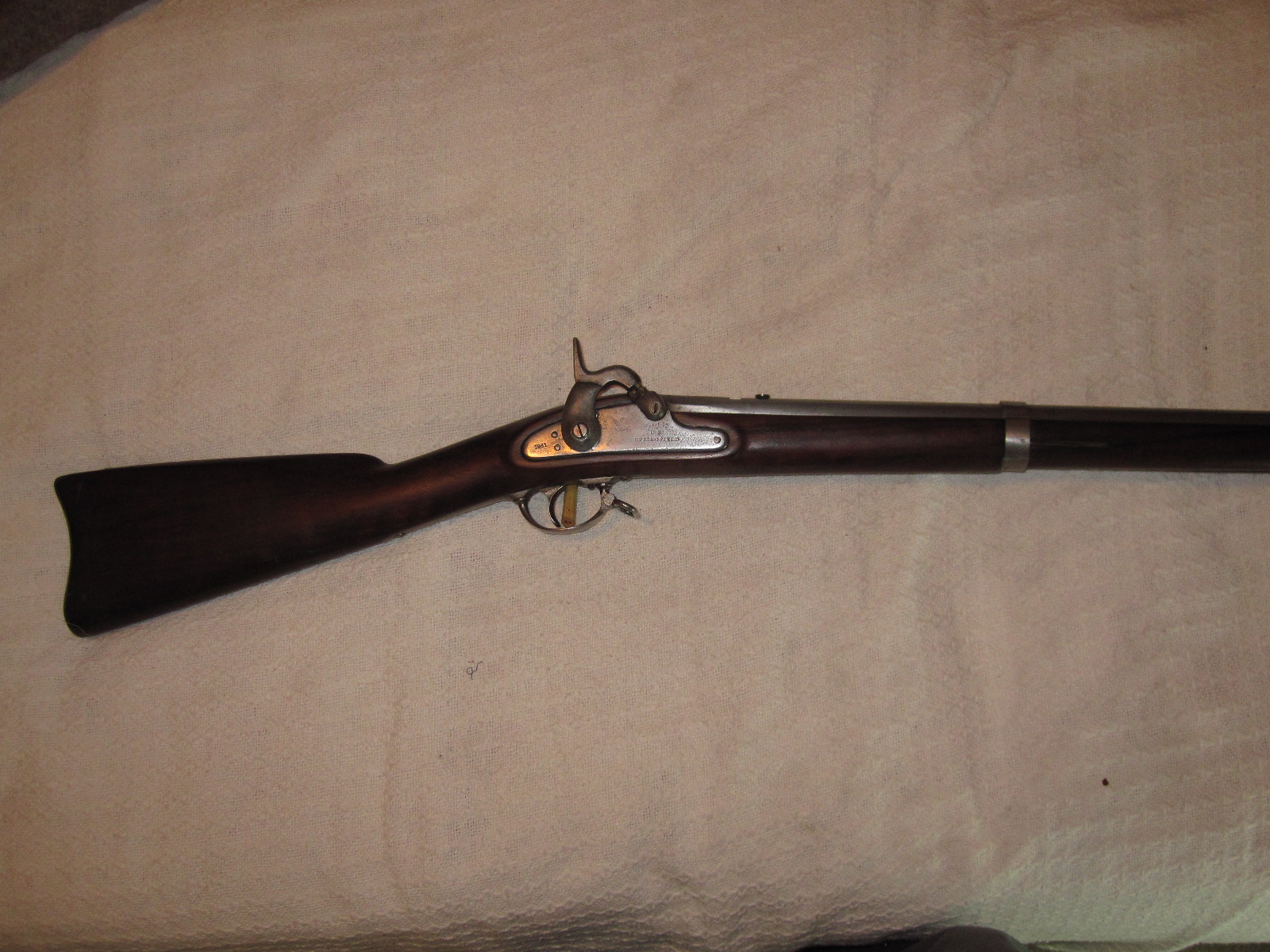 I have a mostly original '61 Springfield that was built up as an NSSA shooter years before I came to own it. It's got a Dunlap stock & mostly original metal with a relined barrel from (probably) Whitacre machine. It actually has a real, original Springfield lock plate marked "1861" which I've heard is fairly rare. It's a nice gun overall & pretty darn authentic too.