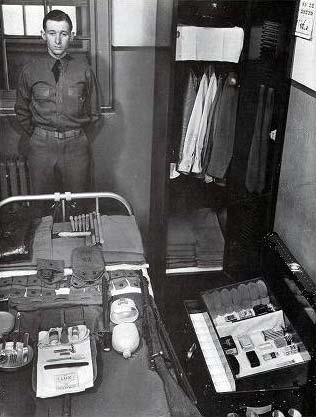 In the 20th century is was common for a soldier to have a card that listed and illustrated all the gear that was needed and how to lay it out in garrison (cool word) or in the field for inspection.