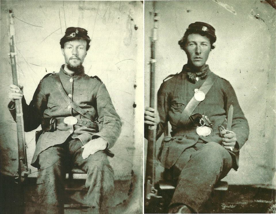 Several 1861 photographs of enlisted soldiers of the 9th Michigan Infantry have them wearing what would appear to be an early sack coat with 5-buttons, a standing collar much like an enlisted man's frock coat and shoulder epaulettes. There is also a external pocket on the left side of their jacket. The regiment was also issued dark blue trousers initially.