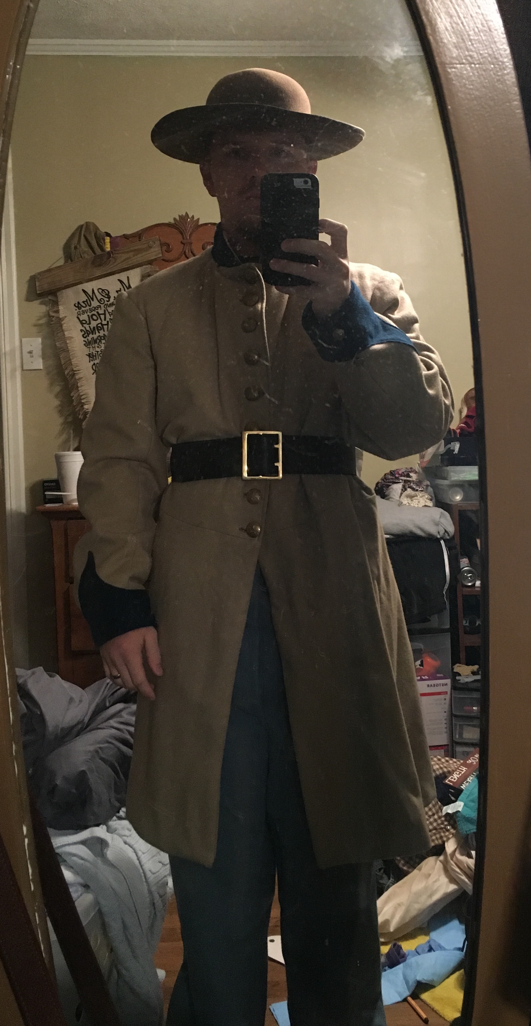 I think it would be more valuable to talk about what you're planning on using for the event and why. From the pic, viewers can only see your hat, frock, belt, and portions of your trousers, and none of these items can be seen in detail. Your frock looks a little big, but The Old Fellows were men and boys who wore what they were issued, so that's nothing to worry about.