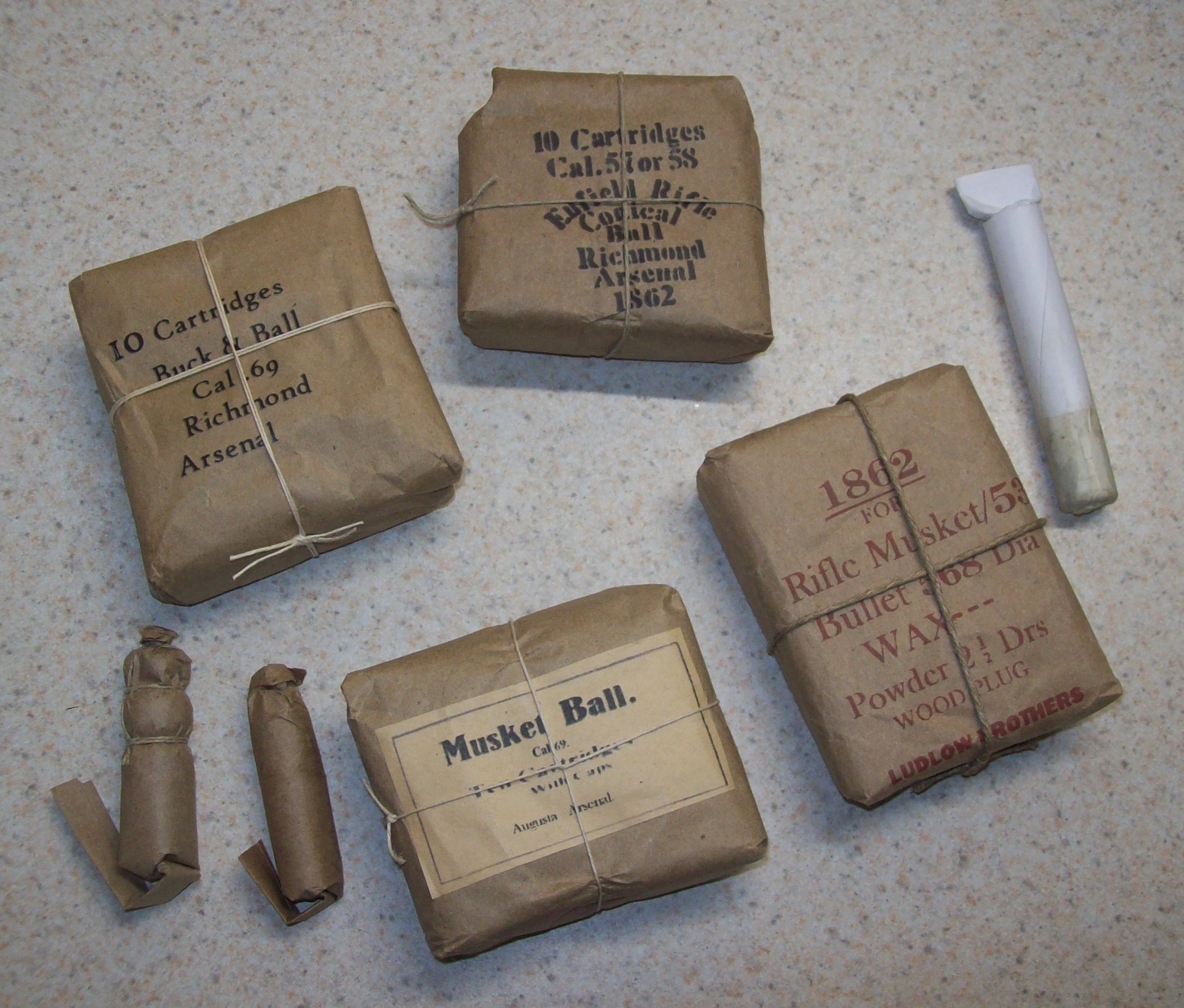 I use the masking paper exclusively, I find it's stronger than newsprint (any form) and easy to work with, though it's a bit too brown in color. Confederate AP's were usually stamped on the wrapper, or used labels that were pasted on. The photo attached are some (not all) Confederate labels/cartridges I have used. the enfield cartridge I used typing paper to form, everything else I used masking paper.