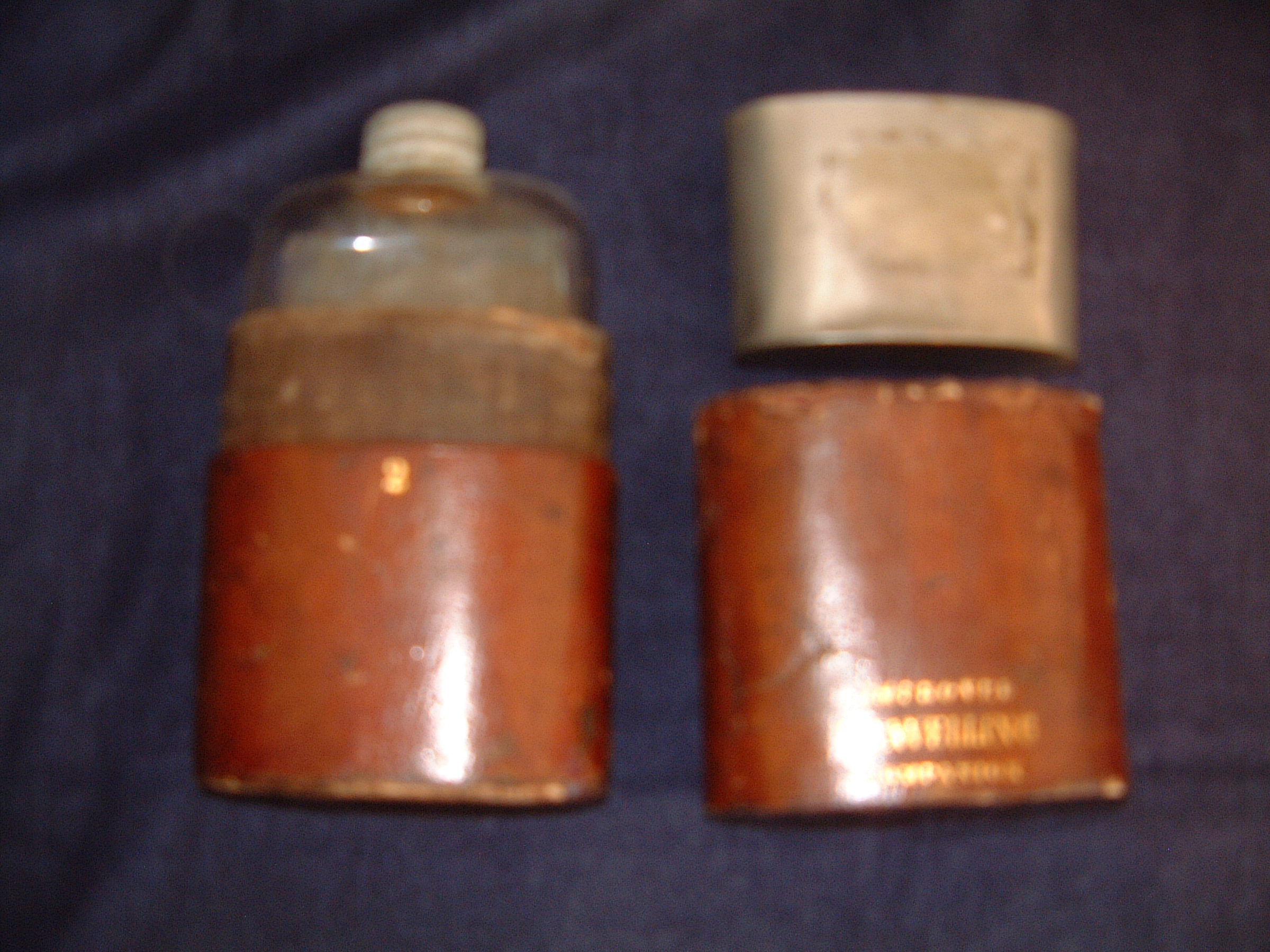 Gents... Thanks for the responses. I have two antique silver hip/pocket flasks that I'll post pics of soon. I -think- they have the "attached" style of screw-off lid you were talking about, Hank. I didn't want to post them on here before I found out if they were period or not. Just confuses people and that isn't right on a site like this. :)