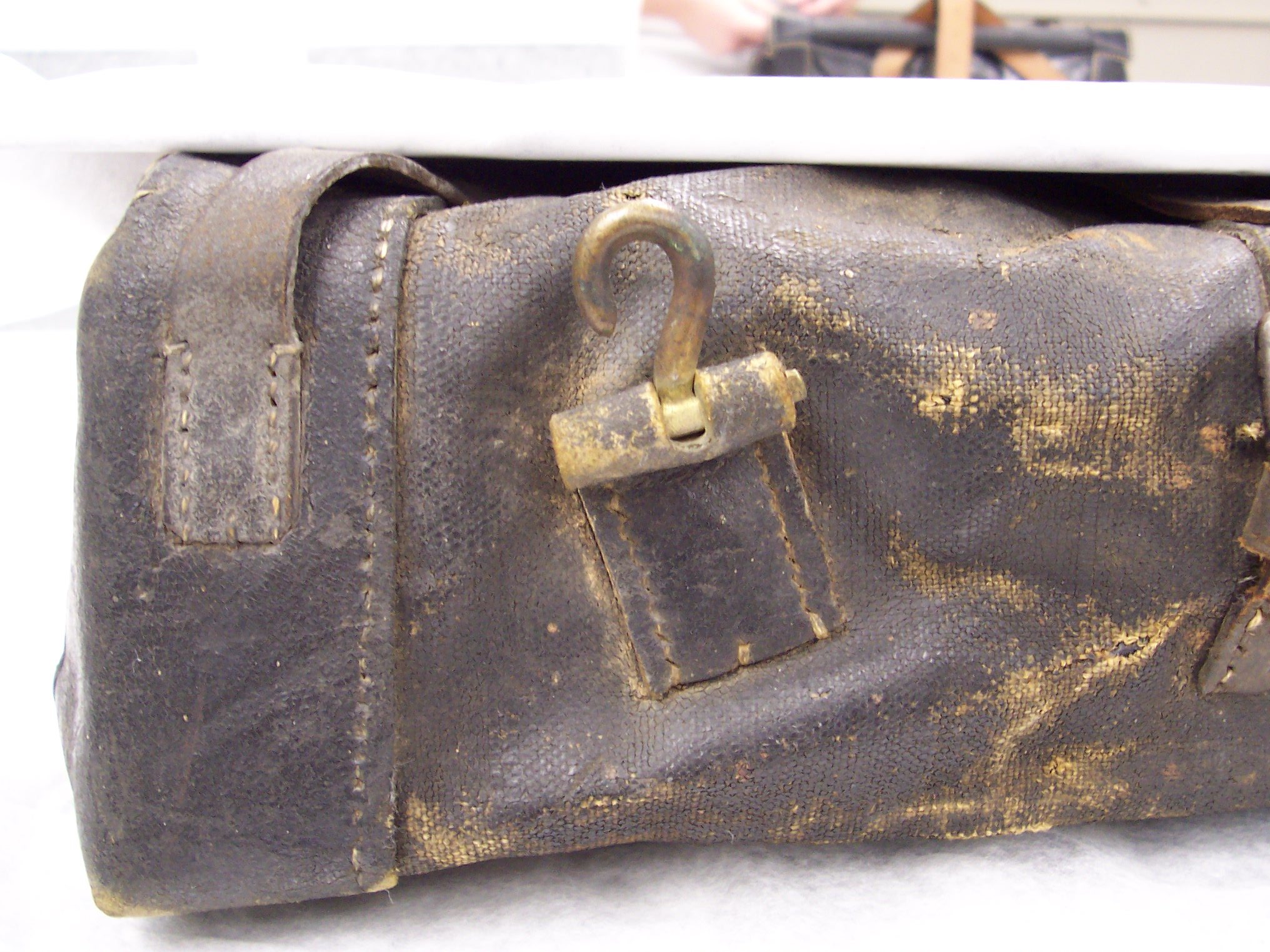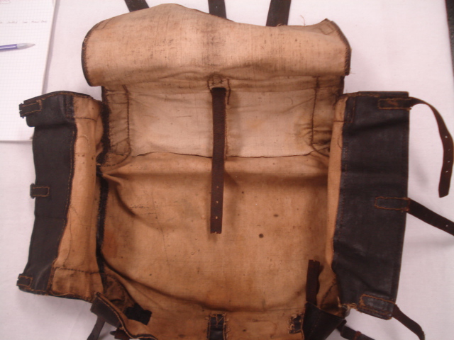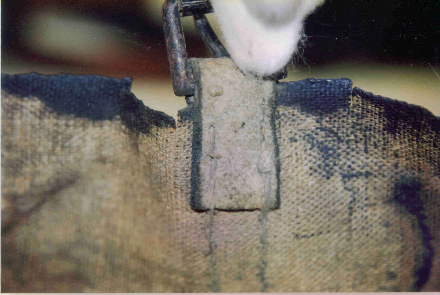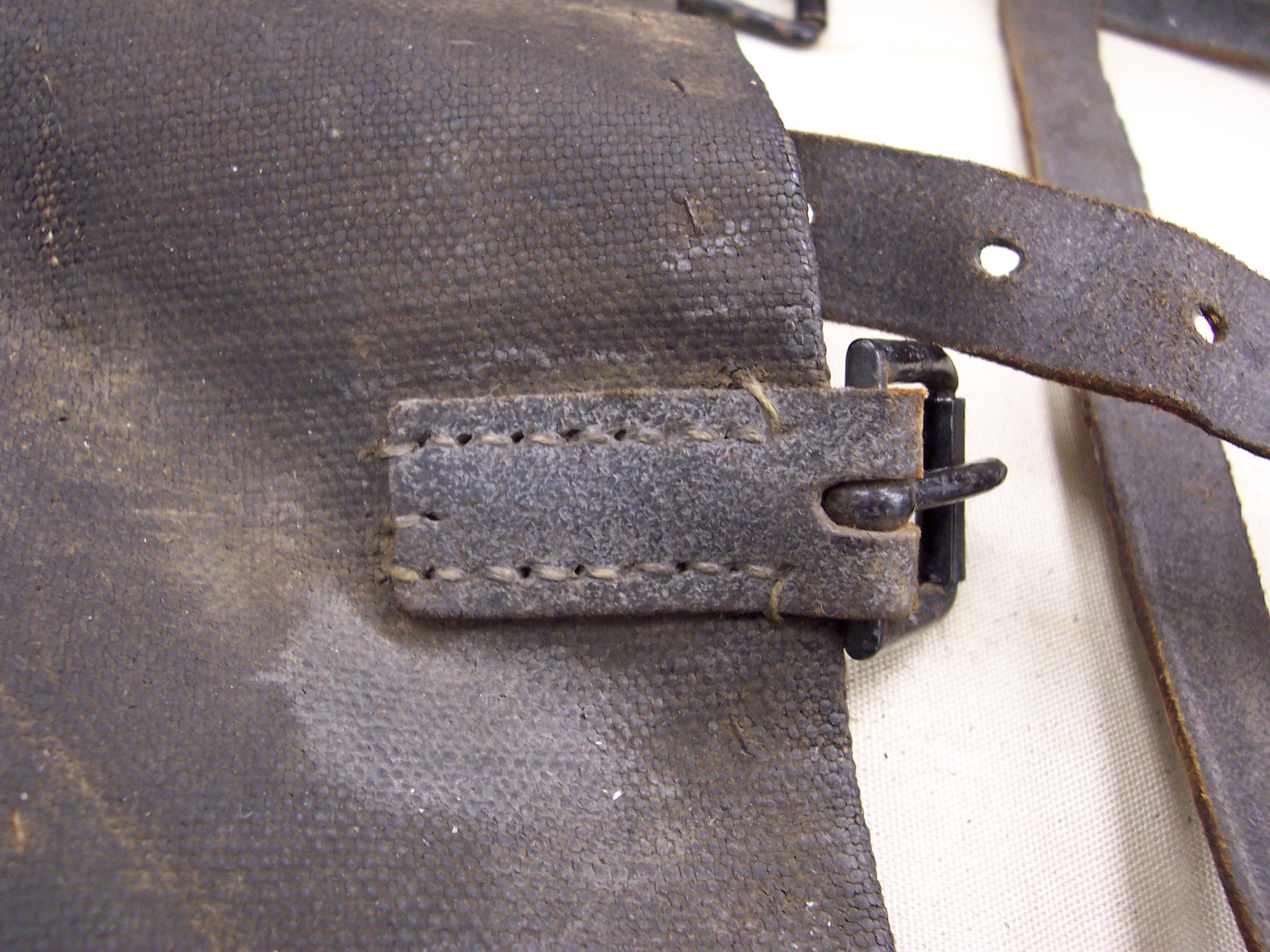 Enameled cloth....That makes perfect sense! The original I studied was painted black but did not have the distinctive smell, look or feel of the linseen oil/ lamp black/ japan drier/ and turpintine. so enamel....I bet that was what was on it. I believe it was CS made b/c The stiching is semi-sloppy, Sometimes they even backstiched the leather in place instead of saddle stiching it. It wasn't marked at all. It wasn't linen. And It had completely different hardware. On first thought I guessed it was cotton but further thought and studying made me believe it was hemp! Actually this knapsack belonged to McRae...i think...