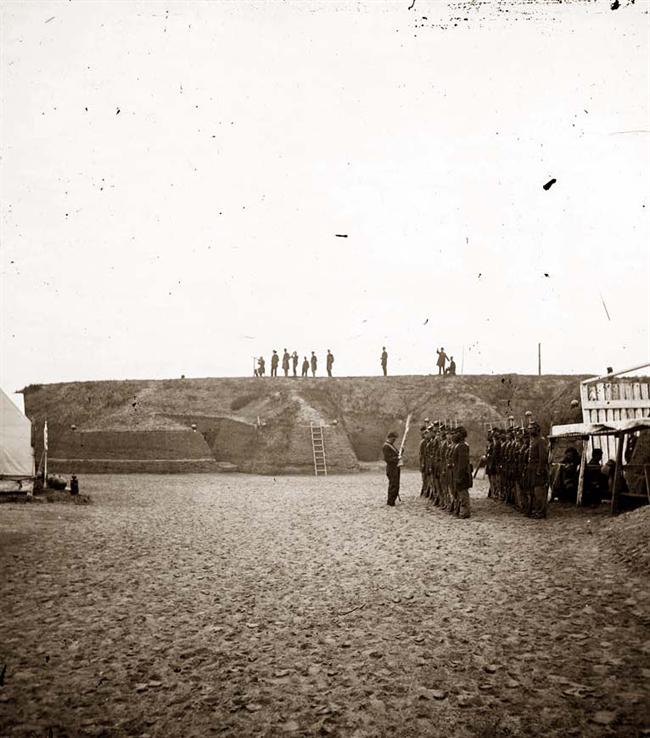When the instructor shall have passed him, each soldier will retake the position prescribed at the command inspection of arms, and return the rammer; after which he will face to the front.
