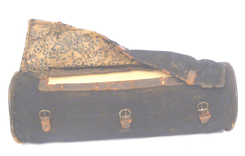 What did Confederate-made items look like? Officer’s valises and bags were different in appearance from troopers apparently as to quality of materials and amenities. For troopers, arsenal produced valises generally tended to follow pre war patterns. Valises were made of just leather, cloth (wool early in the war then painted cloth) or combinations of both leather and cloth. Usually with wooden ends to hold their shape. Sizes, quality and add-ons varied. In general, russet leather would be more common than black. Hardware was that which was available to the Southern arsenal at the time....variations of iron and brass horse shoe or iron roller buckles similar to those used on spur straps and bridles.