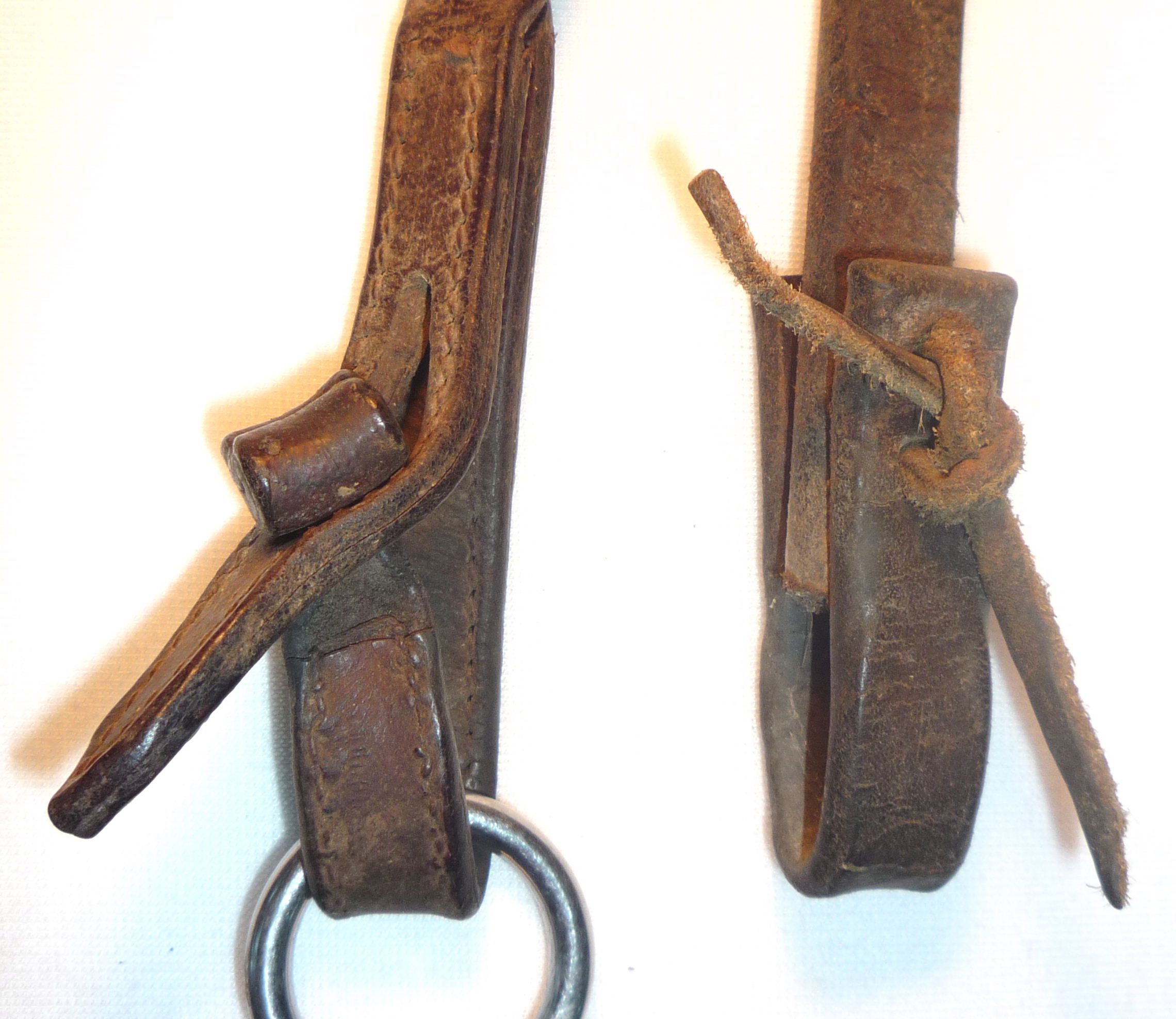 The first two photos show common draught/draft/coach type bridles as indicated by the type bit and the use of the rein safe (this kept the reins from being tangled in the legs of the horse or other harness). Nevertheless, I'd like to point out the leather cuts, the rosettes and make special note of the common iron horseshoe buckles employed. These buckles were very, very common prior to and during the war (in both civilian and military applications) including extensive use by Confederate makers.