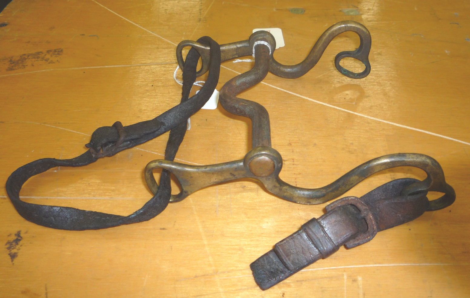 The last photo is of a grouping of bits that were crated for shipment on the Arabia. You will note their similarity to later period "mule bits" but also note that they are quite different and should not be confused with the post war mule bit. In one of my articles on the web site (the Richmond Arsenal Officer's bit) I go into more detail on these bits.