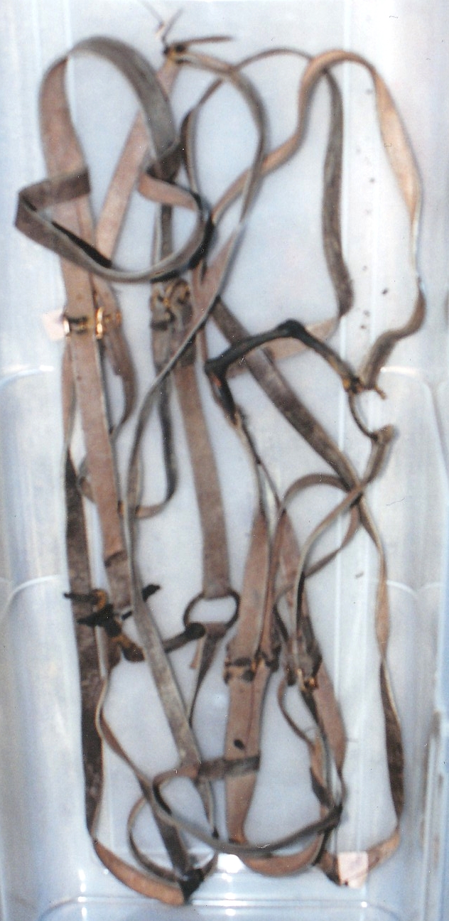 The photos enclosed came from that wonderful collection. These were taken and sent to me many years ago by one of the founders of the collection, David Hawley. While they show different types of bridles the patterns and hardware are very informative.