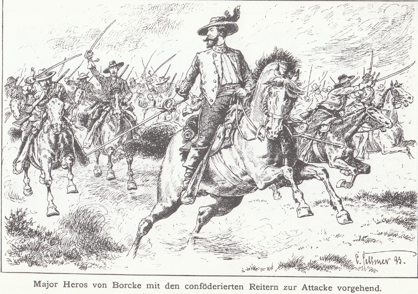 At the beginning and during the first two years of the war the Southern states had quite an abundant supply of horses. For a number of years Southerners had been breeding horses very scientifically. Without regard for expense, valuable studs had been imported from England, two of which had even won the English Derby. The horses were of medium size, very elegant in form, and extraordinarily efficient. They wee also characterized by great docility and a very gentle nature. In bivouacs there were often several thousand horses, including no small percentage of stallions. Once seldom heard a sound from them, there was no biting, kicking or loud whinnying as is usual in European armies, even with small numbers of horses.