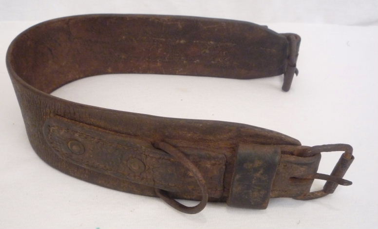 1. Is a typical but simple leather girth much like so many others. Off of a English rigged Eagle pommel saddle.