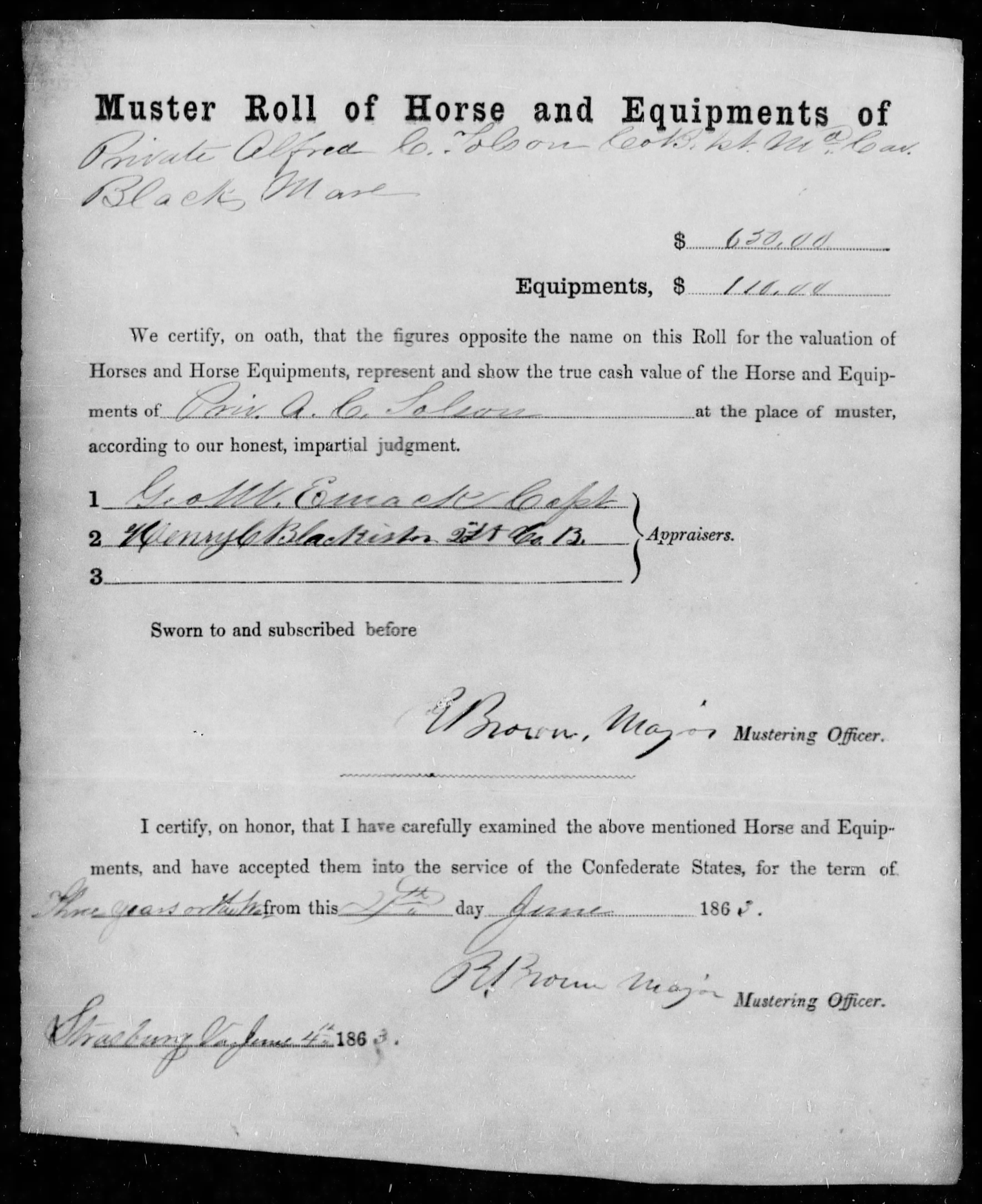This question is based on a CS trooper and the use of his horse. My questions have to do with the logistics of appraising and ultimately reimbursing for a horse. My understanding is when a trooper was enlisted, his horse and equipment if was appraised and signed by two to three officers. He was then paid per month for the use of his horse. If the man was dismounted during service and given furloughed on horse detail, when he return to camp with a horse, the same process was done. If the horse was killed or disabled in action, he would then request to be reimbursed for the horse or lost personal equipment and sent to get another. Is this process in more or less accurate?