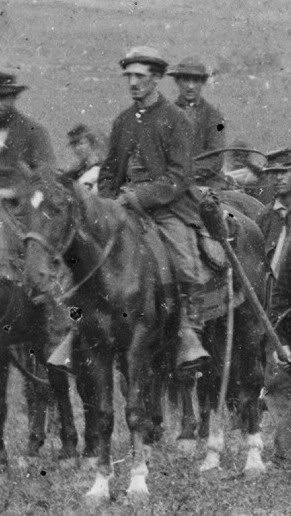 I'd say QM wagons or artillery... I'd love to see the uncropped image. I think that the fellow in the back is holding a blacksnake whip, like a drivers whip or bull whip, makes me think artillery driver. Add the whip, the sponge and what appears to be a tug (if you look under the main mans right stirrup), and I'd have to say artillery. I also noted the non regulation saddle blanket and how it's not folded to regulation... Artillery or cavalry still a cool image, it's a perios image with horses and that alone makes it alright by me! Thanks for sharing. TEH
