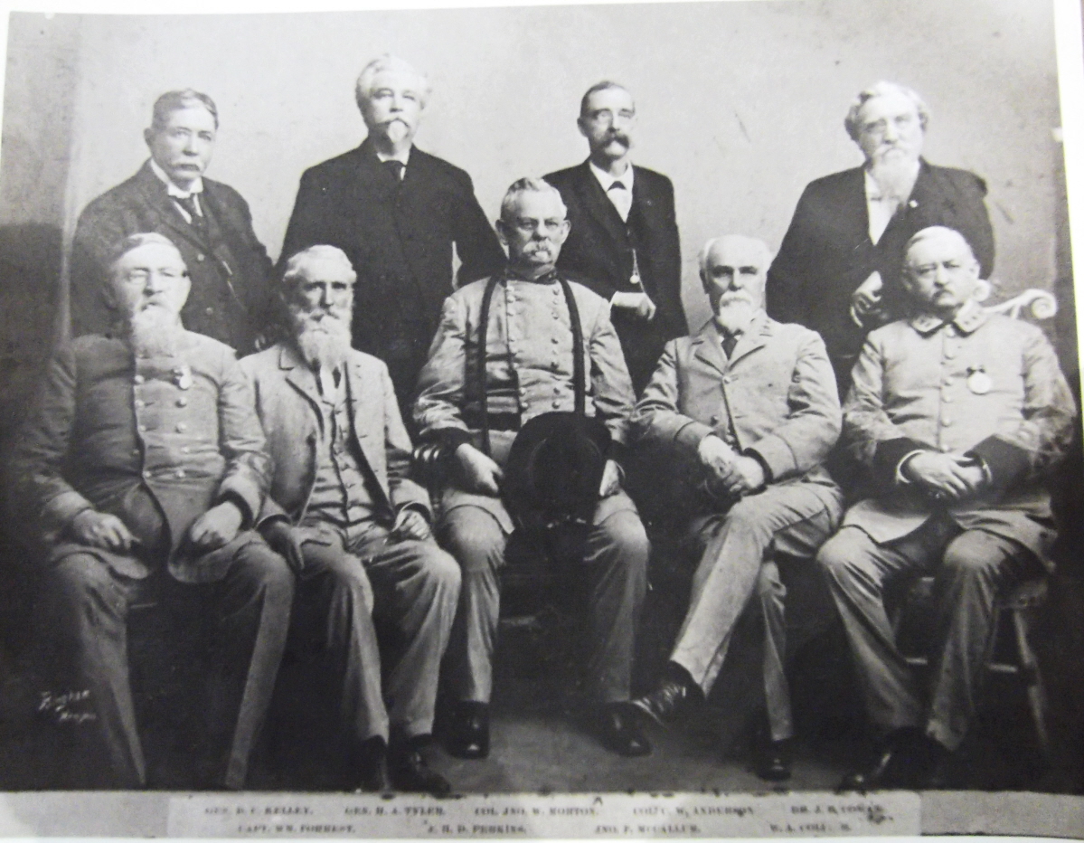 -Really nice Forrest’s Cavalry photo grouping! Post War Reunion photo.....Although very much like another well known photo I have never seen this particular photo before. It shows some of Forrest’s other lessor known officer’s. The photo caption mis-identifies some of the names to the faces but I can clearly point out Willie Forrest, Forrest’s son (back row second from left), Maj. Kelly (seated second from left) , Dr J.B. Cowan chief surgeon (standing on far right), Capt Morton (sated far right); Capt Anderson (chief of staff (seated far left) but I am not clear on associating names to other faces.....anyone???