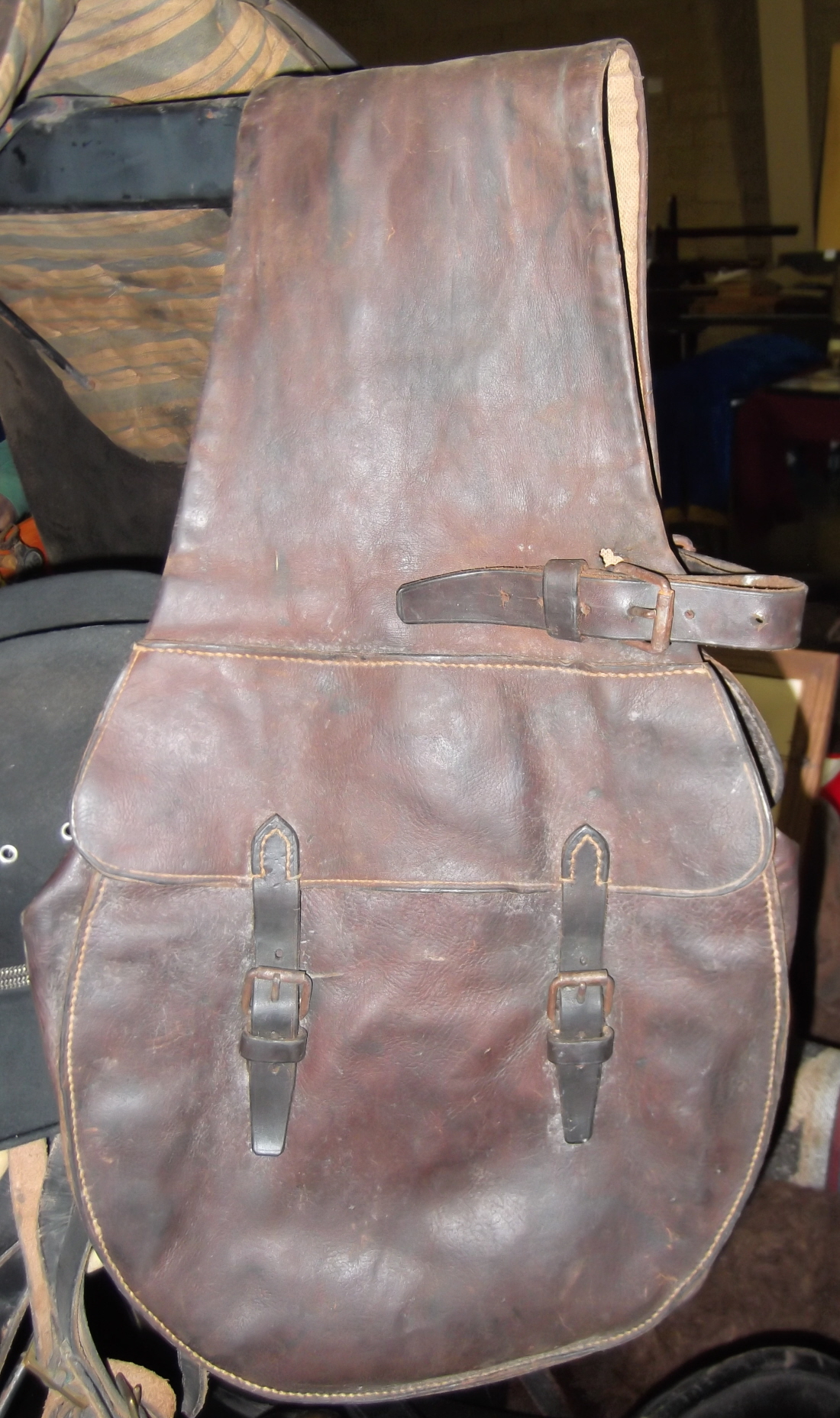 -Nice but post war civilian saddle bags...although likely a post war catalog item meant to replicate or at least draw similarities to the M1858 McClellan they are somewhat bigger and have different pocket sizes and hardware.