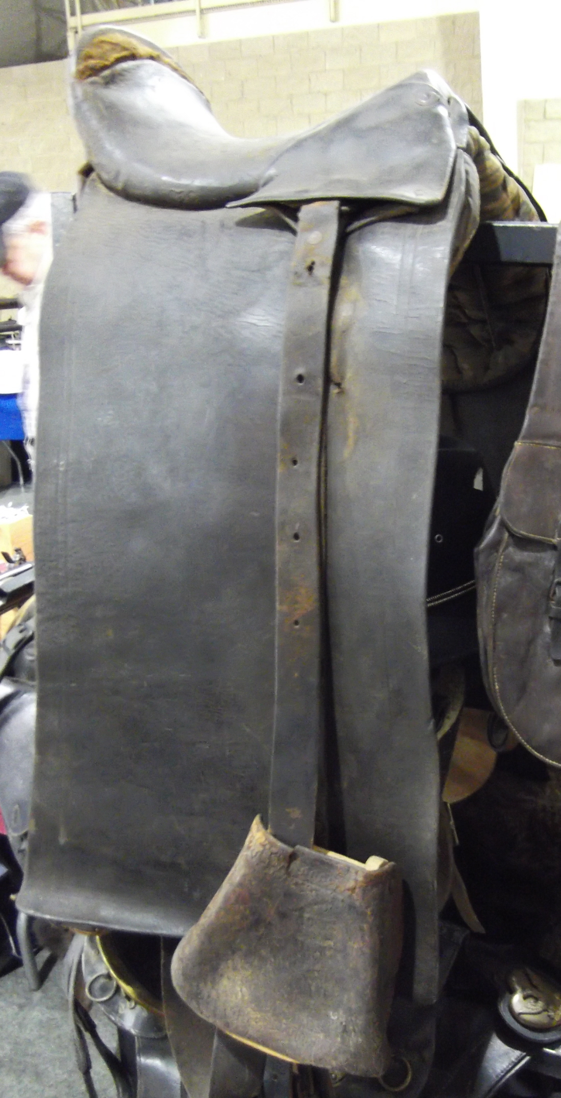 -RARE M1872 Mountain Howitzer girth. This is the only one of these I have ever seen. In fact, perhaps the only in existence. Even R.E Dorsey’s.Ken McPheeter’s book THE AMERICAN MILITARY SADDLE 1776-1945 has only a drawing of it. An examination reveals it is simply three M1872 cavalry girths sewn together. Still, a rare bird!!