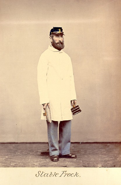 I was curious if any of you had heard of or even knew of any existing stable frocks? I know what they were made of etc, but I'm more interested in construction methods... what I mean were the simply made as a regulation frock or were they a more simple affair like the sack coat, but only a frock? Any thoughts? If you do not want to "put it out there" on the AC, e-mail me at home at ziarnek@egyptian.net