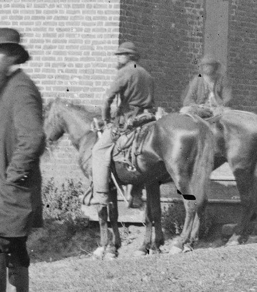 As Andrew said, I originally posted this photo detail here of this group of cavalry taken at Charles City Court House. To my knowledge, its the only known photo I've seen of a trooper mounted with saber hooked onto the saddle. Never say never, I just haven't seen any other and that was quite a random find itself.