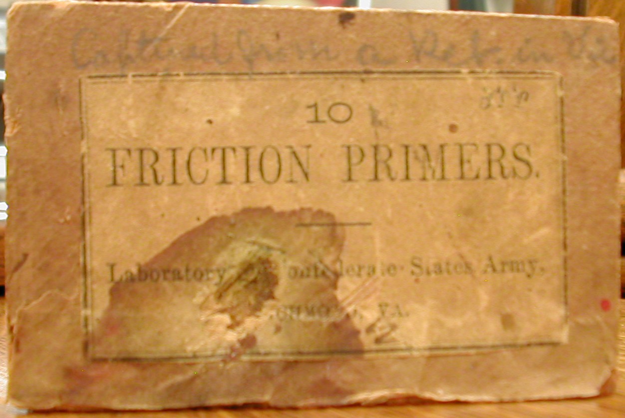 Does anyone know of any surviving Confederate friction primer packages? I'm looking for both the 10 pack in paper and the larger tin for 10 paper packages.