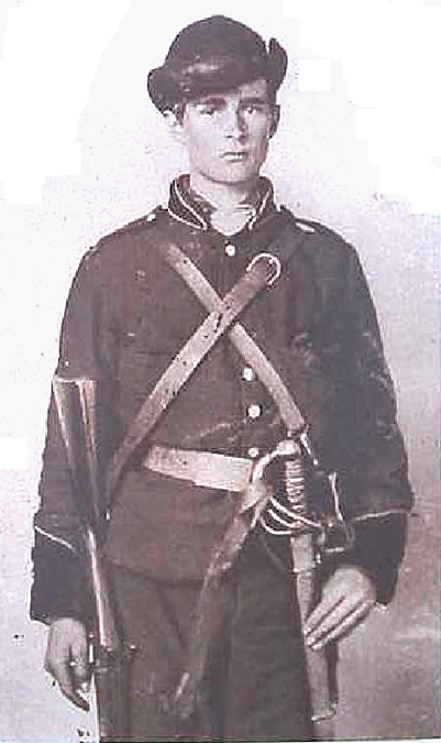 I am looking for the photo of a csa trooper who has a shot gun with a ring affixed to accommodate a carbine sling. If you would please post that photo or pm me with it I would be very greatful.