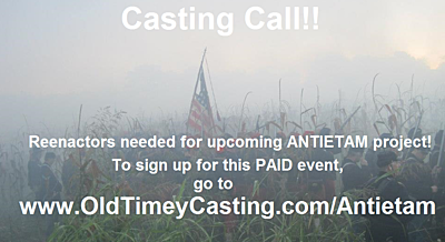 As of right now, we are casting for an upcoming companion project for the PBS show, Mercy Street. Not only will we be filming scenes that took place at Antietam, but there are more projects right after!! (www.OldTimeyCasting.com/Antietam)