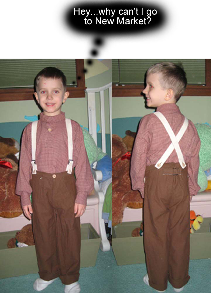 My 6 year old son will be joining me this season at reenactments. I finished making his civilian shirts, trousers, and drawers, and am trying to see what to do about shoes. He's in a toddler 13,almost a child 1, and I am looking for suggestions on what civilian style shoes he should be wearing and where to get them. I would even consider something that may not be totally authentic but perhaps something that could be modified so that it would be acceptable.