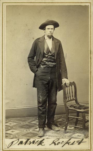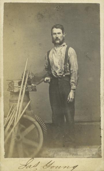 Many of these men are posed in the clothing they clearly wore while working, some others are posed outside of their work clothes, so some distinction should be made between them. There are some images in that collection of men posed outside their work clothing such as George Murrin who worked for Lyon, Shorb & Company, also known as the Sligo Iron Works of Pittsburgh, as a boiler. He is posed wearing a fine broadcloth frock coat of the current 1860s style.