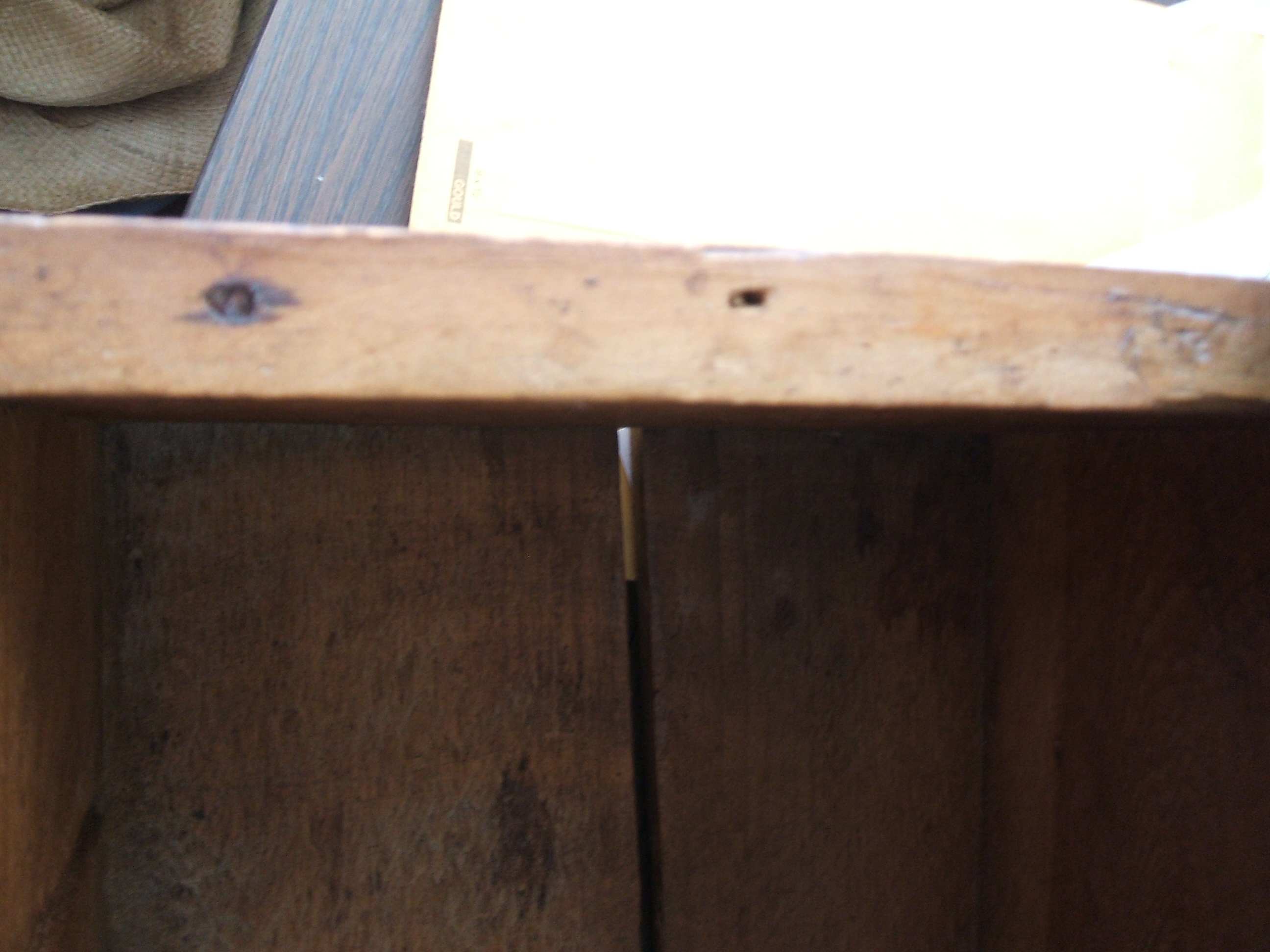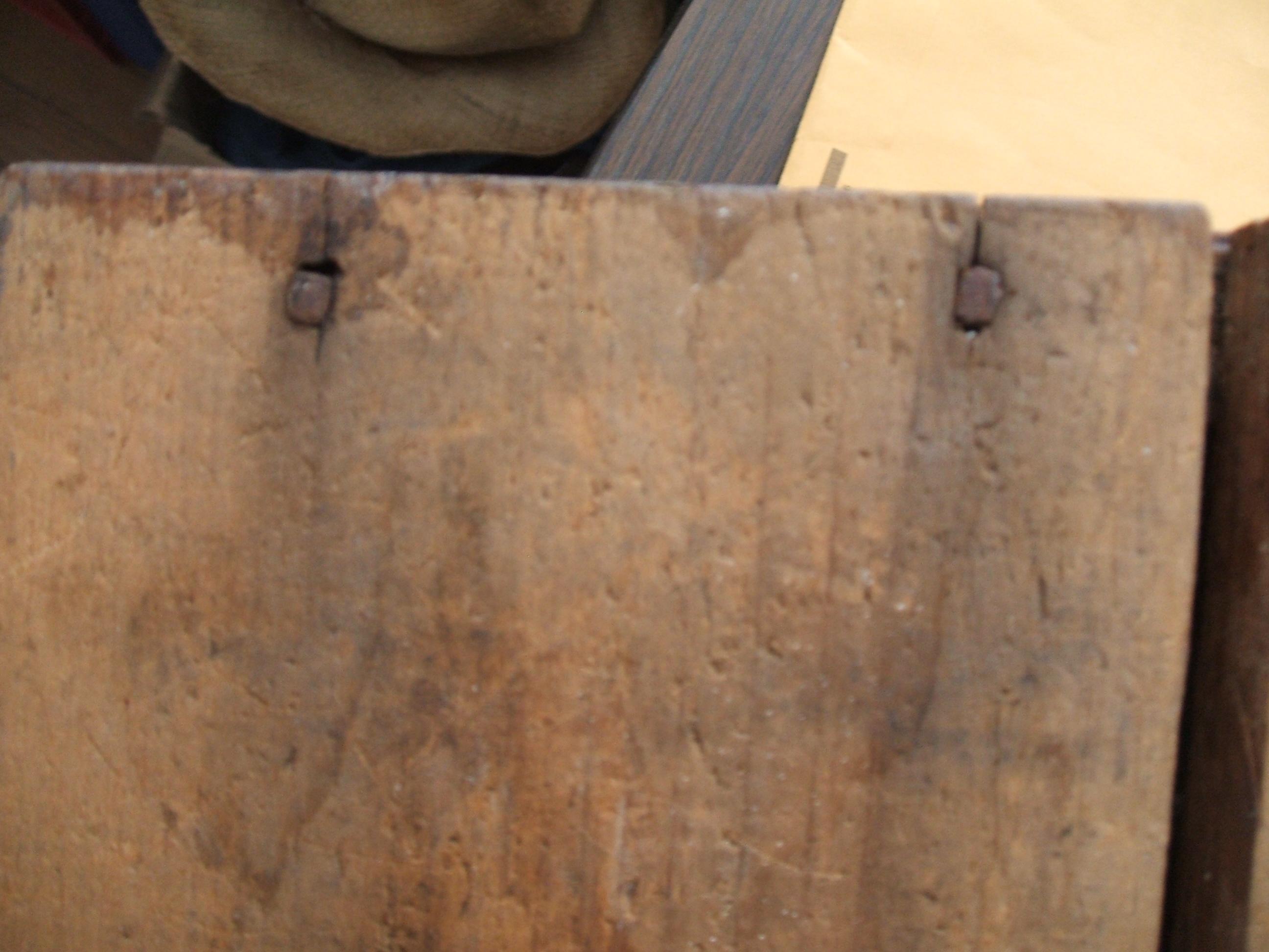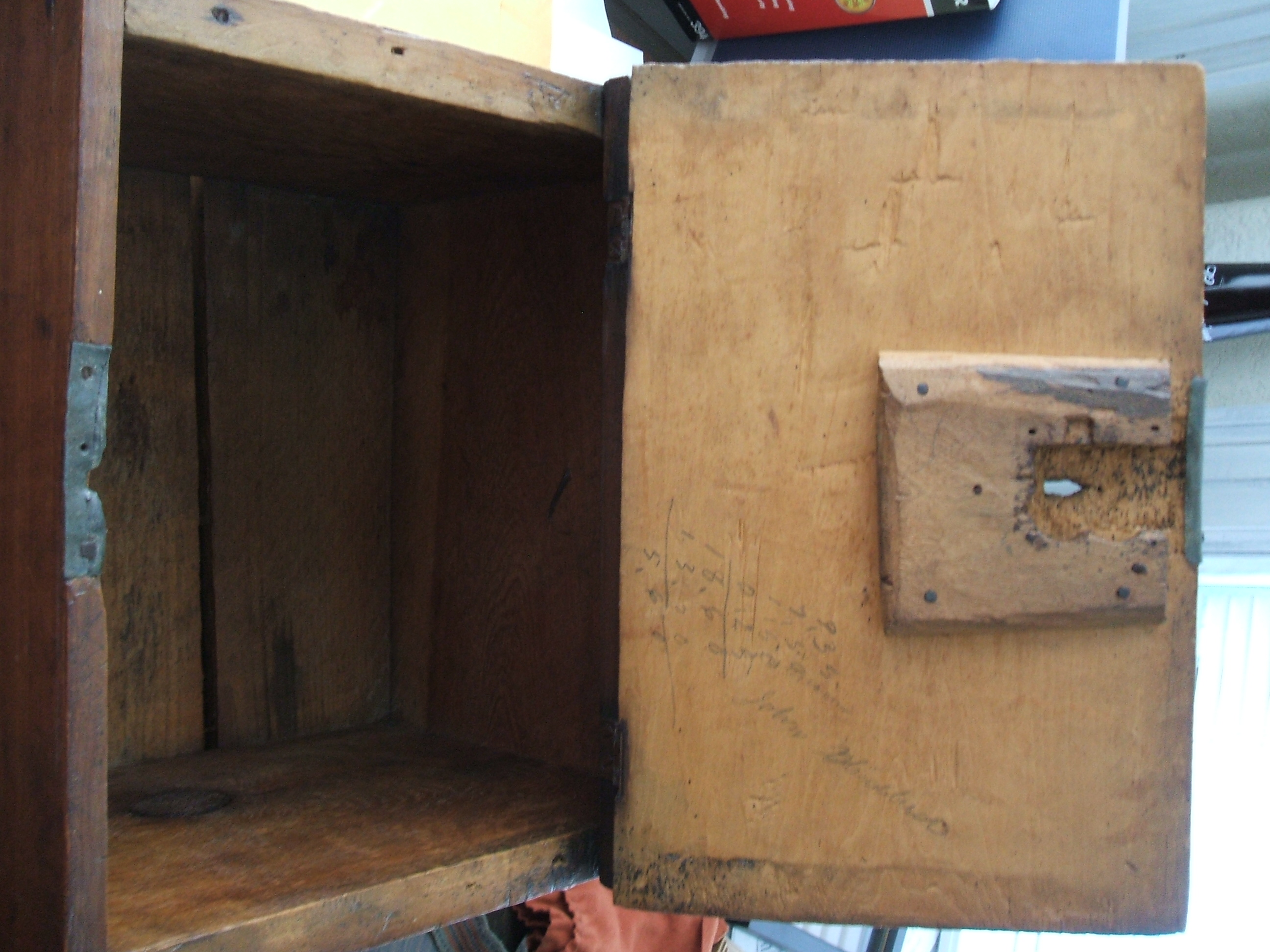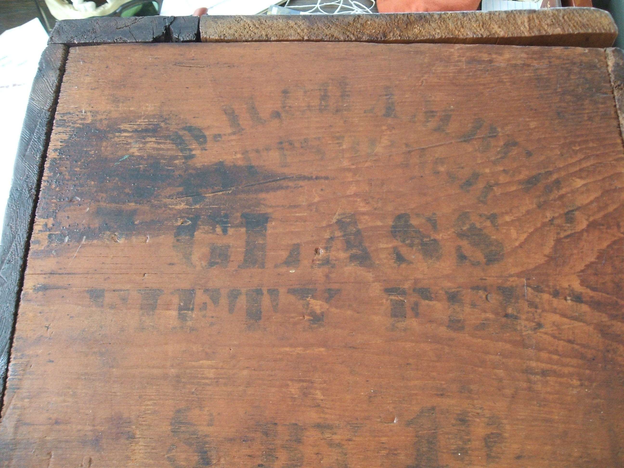Here is another shipping crate for your viewing pleasure. I picked this glass crate up the other day in North Western Missouri. Only one side is marked. It is constructed with cut nails. The lid was removed from the box and it was converted to a lock box of sorts. A portion of the lock box lid is re-installed with cut nails, the hinges are applied with straight headed flat head screws. The box appears to have been broken into at one time, from the "chew" marks near where the lock was and the addition of metal plates.